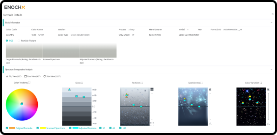 实时计算色母克重,自动记录微调参数,智能测色仪推荐配方,赋能终端客户快速精准调色